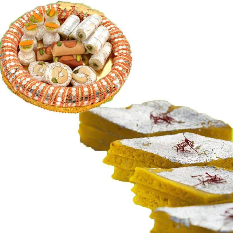 This is a superb combo of sweets for all special occasions.Kesar Burfi & Kaju Sweets is a Rich, Delicious, Hyginically prepared and is a perfect choice to your dears to make them Happier on Birthdays, Festivals and on all Occasion.