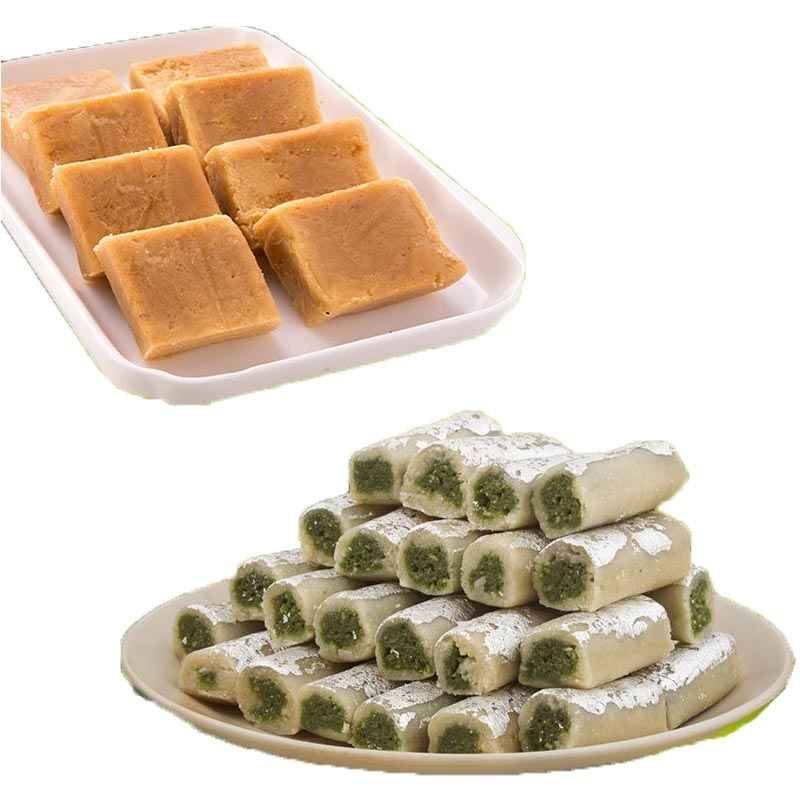 This Sweet combo is suitable for all occasions.Mysore Pauk & Kaju Roll is a Rich, Delicious, Hyginically prepared and is a perfect choice to your dears to make them Happier on Birthdays, Festivals and on all Occasions.